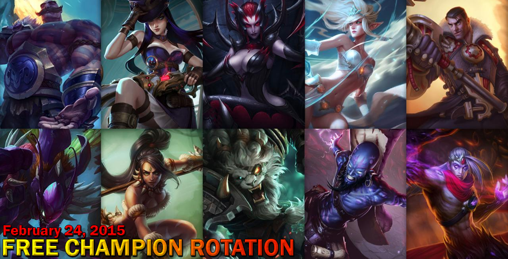 Free Champion Rotation – February 24 Posted in Free Rotations, Games, MOBA by Elu Janna Braum Caitlyn Nidalee Elise Jayce Rengar Kha’Zix Varus Ryze February 23, 2015