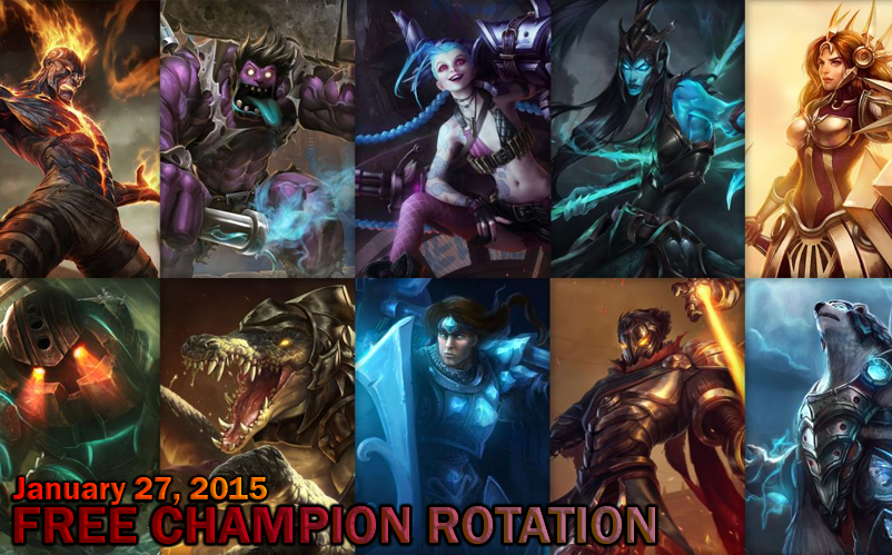 Free Champion Rotation – January 27 Posted in Free Rotations, Games, MOBA by Elu Jinx Kalista Leona Taric Viktor Brand Renekton Nautilus Volibear Dr. Mundo January 26, 2015