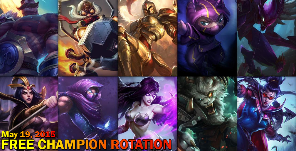 Free Champion Rotation – May 19 Posted in Free Rotations, Games, MOBA by Elu Corki Vayne Braum Morgana Kayle Rengar Kha’Zix LeBlanc Malzahar Kennen May 18, 2015