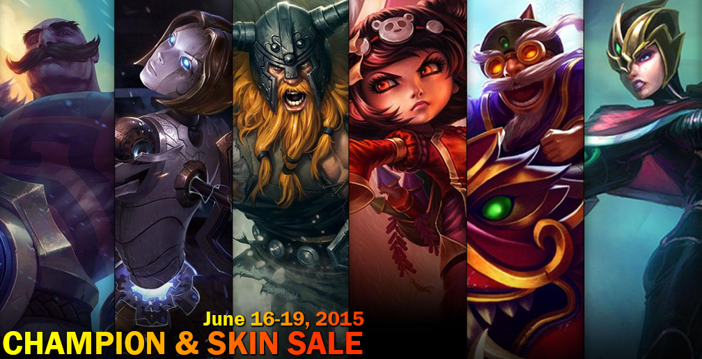League of Legends Champion & Skin Sale – 06/16/15 Posted in Games, MOBA, Skin Sale by Elu New champion and skin sale for June 16th through the 19th! Panda Annie – 487 RP Dragonwing Corki – 487 RP Crimson Elite Riven – 260 RP BRAUM – 487 RP ORIANNA – 440 RP OLAF – 395 RP SkinSpotlights June 15, 2015
