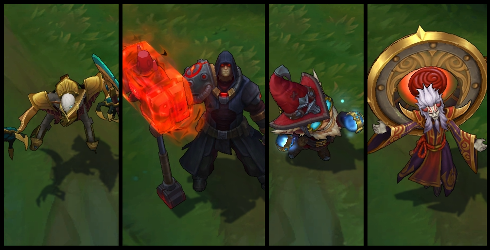 Four new skins up on the PBE. Plus, texture rebalances for Shyvana, Teemo, Poppy and Shaco! Lux is coming later.