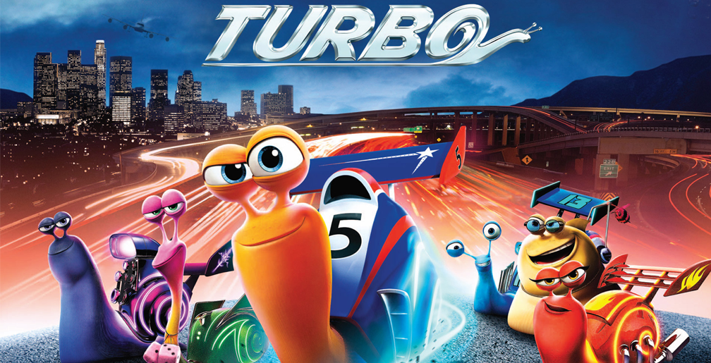 Turbo is your typical underdog film, a theme glorified by animated features these days. This time the underdog is a garden snail named Turbo (voiced by Ryan Reynolds), who spends his time watching VHS tapes of professional car races and admiring his hero racer, Guy Gagne (Bill Hader). Fed up with the daily routine of him and others, including his brother Chet (Paul Giamatti), he dreams of a faster life, a trait that snails lack. After trying to save a tomato from being eaten up by a lawn mower (which he failed), Turbo is almost sucked in too. Later that night, he is swept away by an eighteen wheeler and lands onto a car which is part of a drag race; a few seconds into the race, Turbo is sucked into the car’s engine and is infused with nitrous oxide. This results in his anatomy changing into that of a car’s, speed included. He (and Chet) are taken in by Tito (Michael Peña), the human version of Turbo who is a big dreamer and constantly defying his brother, Angelo (Luis Guzmán). Turbo meets other snails in his new home: Whiplash (Samuel L. Jackson), Burn (Maya Rudolph), Smoove Move (Snoop Dogg), Skid Mark (Ben Schwartz), and White Shadow (Mike Bell). After he’s discovered to be a snail with super speed, Tito decides to sponsor him with the help of he and his brother’s dying business, Dos Bros Tacos. Also lending a hand are neighboring business owners Bobby (Richard Jenkins), Kim-Ly (Ken Jeong) – yes, he voices a tiny old woman, and Paz (Michelle Rodriguez).